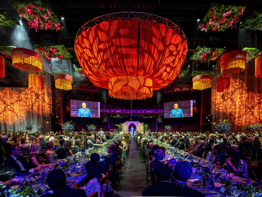 Held on stage at the iconic Filene Center, more than 800 guests gathered to celebrate the curtain closing on Wolf Trap’s 2025 summer season. Guests were transported to the vibrant world of Bollywood with an immersive evening of music, dance, cuisine, and décor inspired by India’s rich artistic traditions. The celebration featured live entertainment, including a performance by Bombay Dreams singer/actor Manu Narayan and a surprising and delightful flash mob by Rhythmaya Dance.