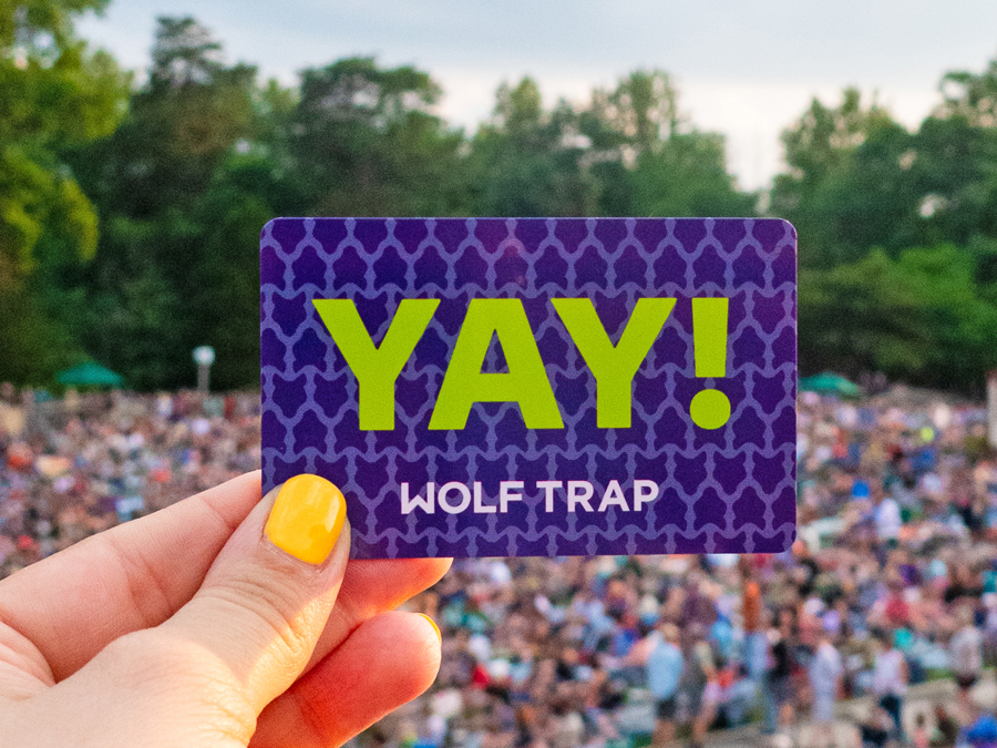 Wolf Trap gift cards are the perfect present for any occasion—anniversaries, birthdays, graduations, or just because. Gift cards can be used for tickets to unforgettable performances, delicious Concessions, or Wolf Trap merch.