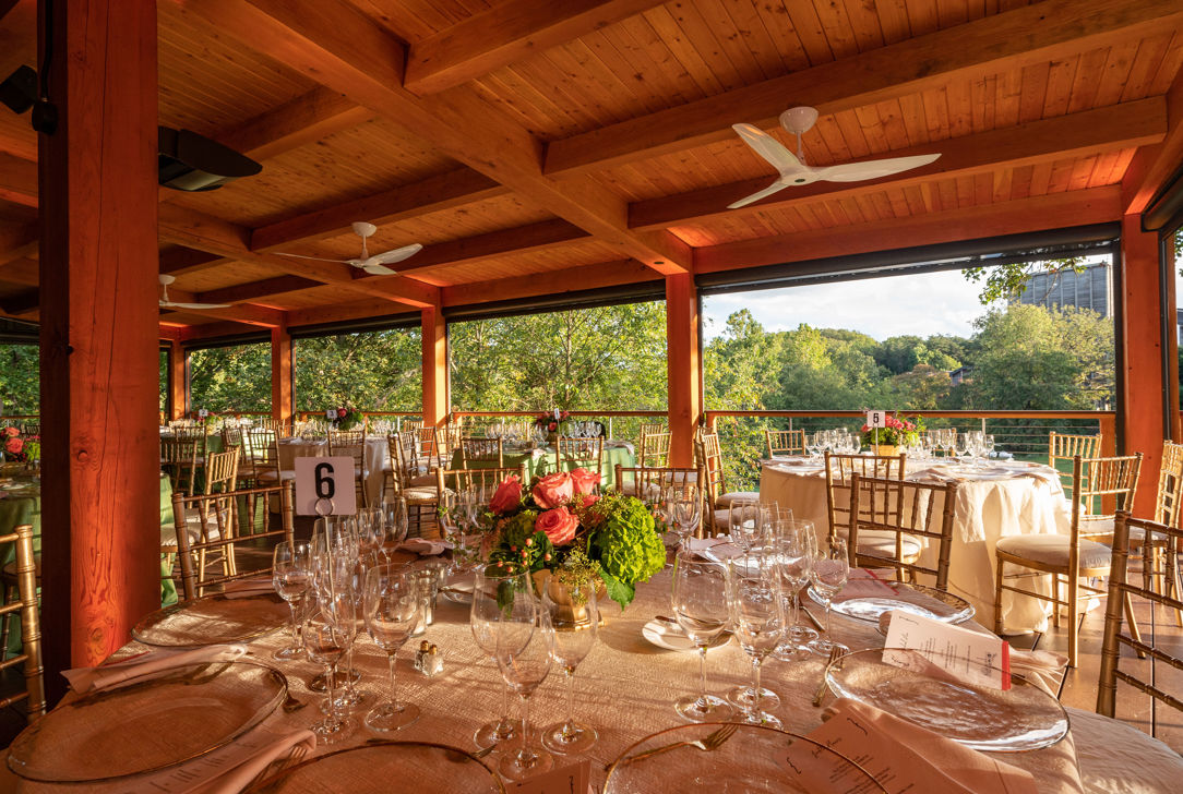The Barns is a beautifully maintained historic building with high ceilings and rustic wooden beams. The space is perfect for fundraising galas, holiday parties, and networking events. The Barns is also a performance venue and comes equipped with a built-in stage ready for entertainment and a supported wooden floor for dancing. This temperature-controlled reception space can accommodate up to 160 guests for a seated event.